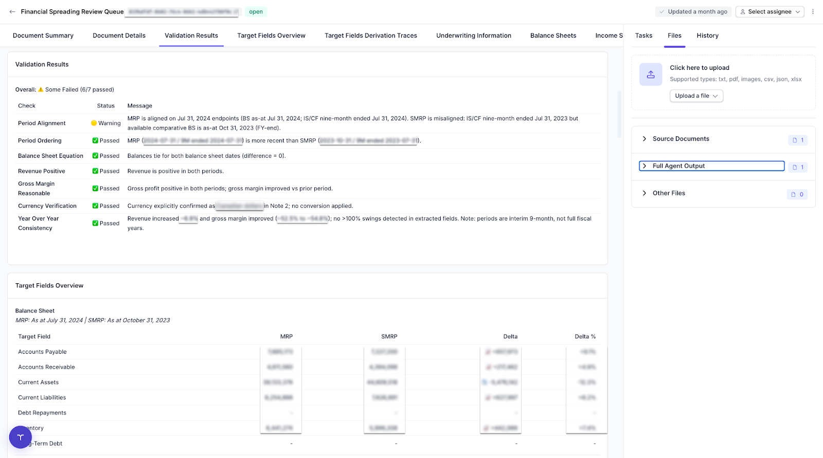 - Model financial data – mapping raw extracted numbers into a standardized financial template to provide a clear and consistent view of a business's financials.