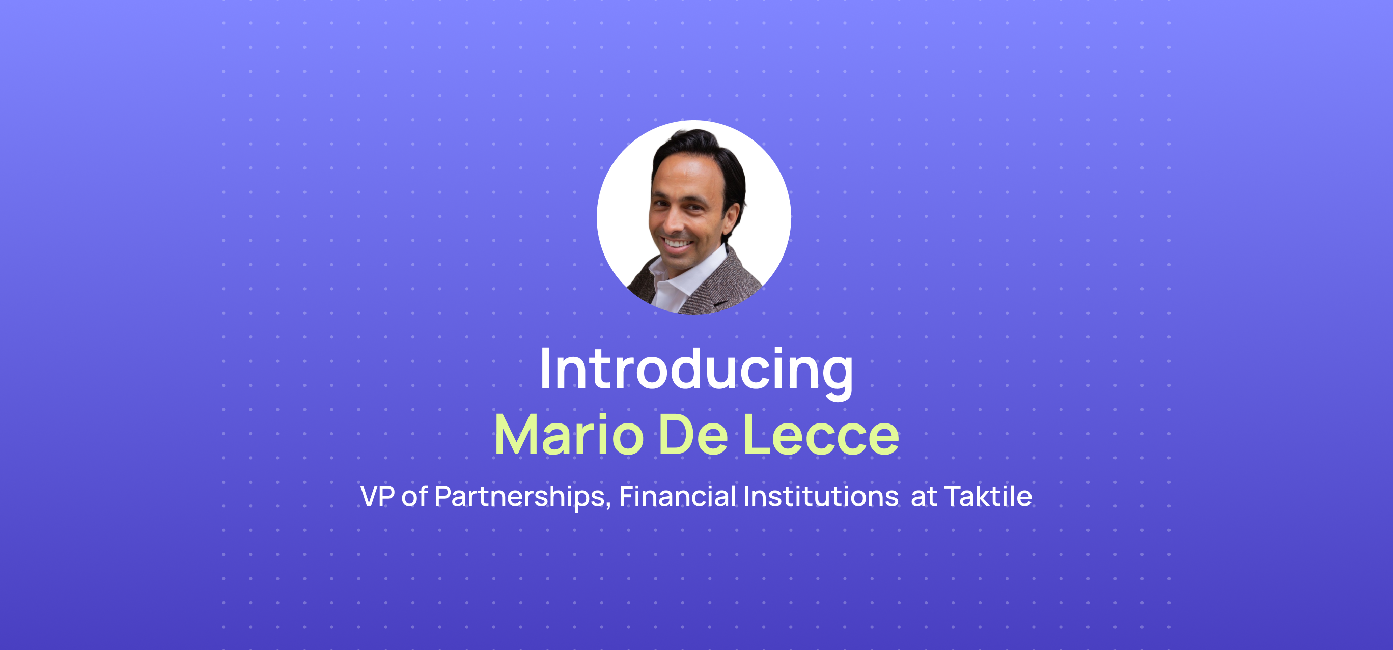 Taktile welcomes Mario De Lecce as VP of Partnerships, Financial Institutions to grow relationships, deepen partner engagement, and drive joint GTM strategies.
