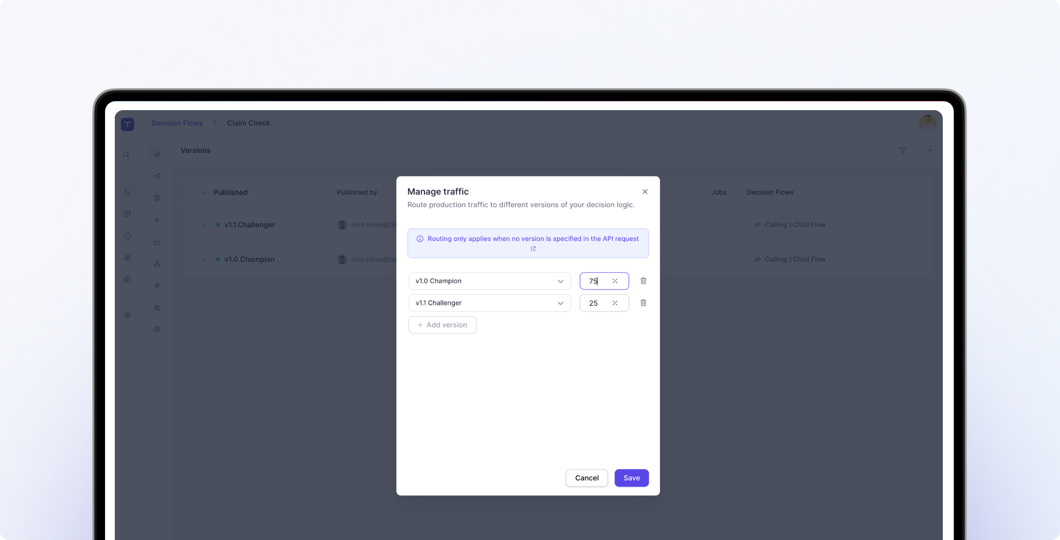 Roll out strategy updates safely with controlled releases and built-in guardrails.