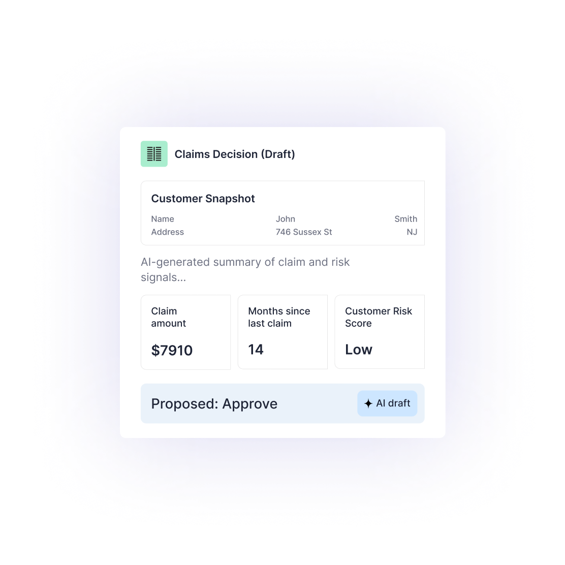 Embed powerful AI automation into your insurance claims operation. Resolve claims faster and smarter with less manual work.