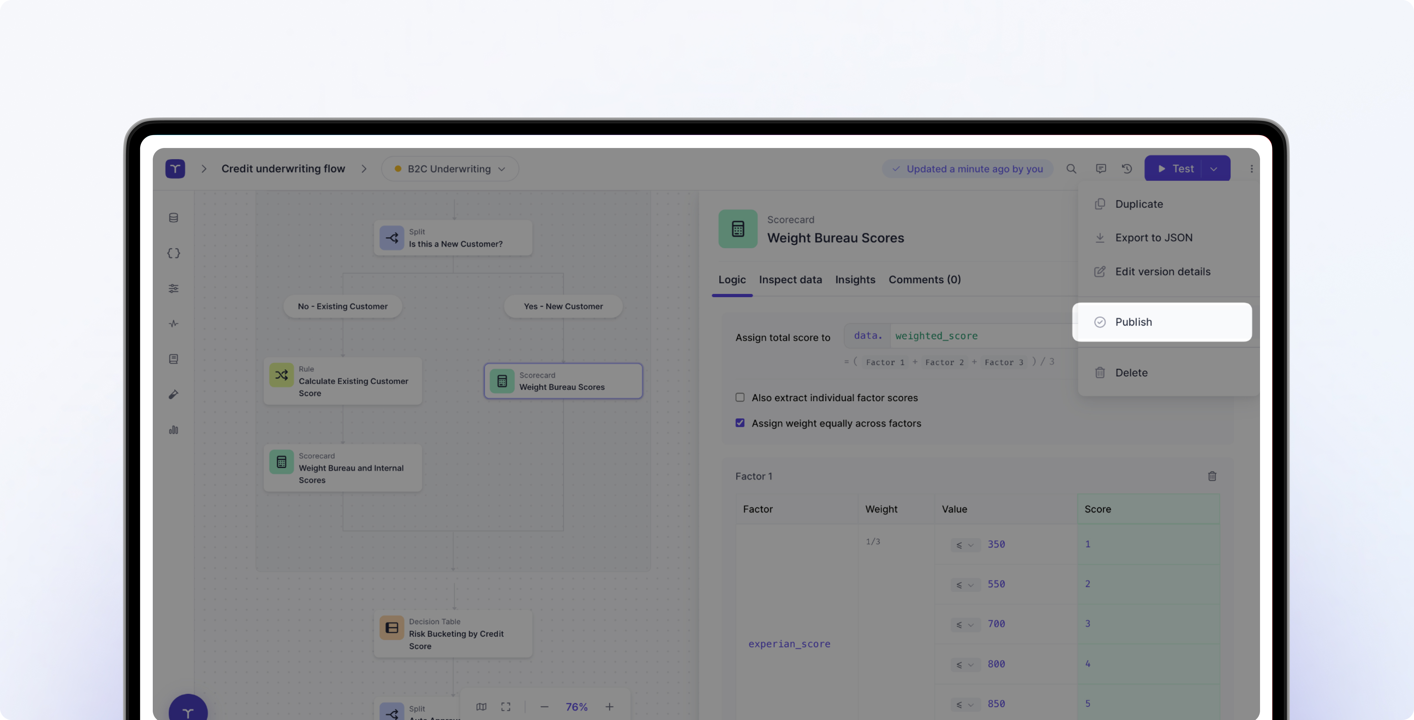 Rapidly evolve your underwriting strategies by enabling your credit team to safely experiment and deploy updates, supported by agentic AI and real-time data.
